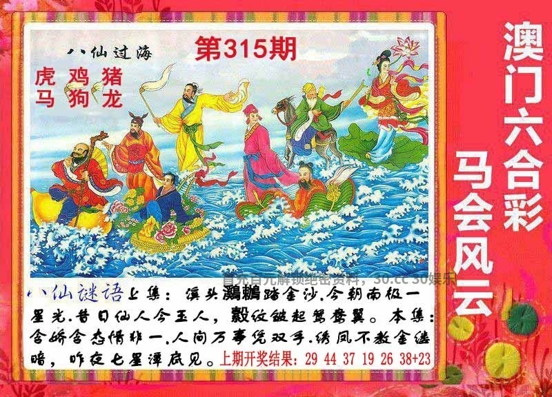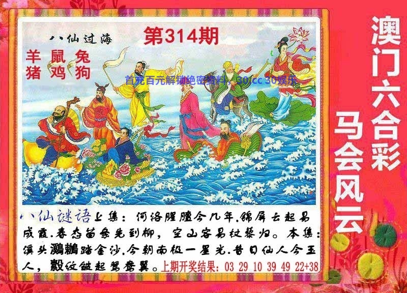 317期八仙谜语:总在人向为第一,随波双泛复双归,乱峰碎石金牛路,为郡三星无一事。