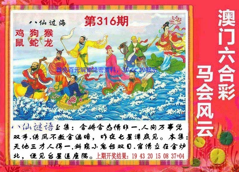 316期八仙谜语:天地三才人得一,斜窥小鬼怒双目,官清立在金炉北,便见台墨逼座隅。
